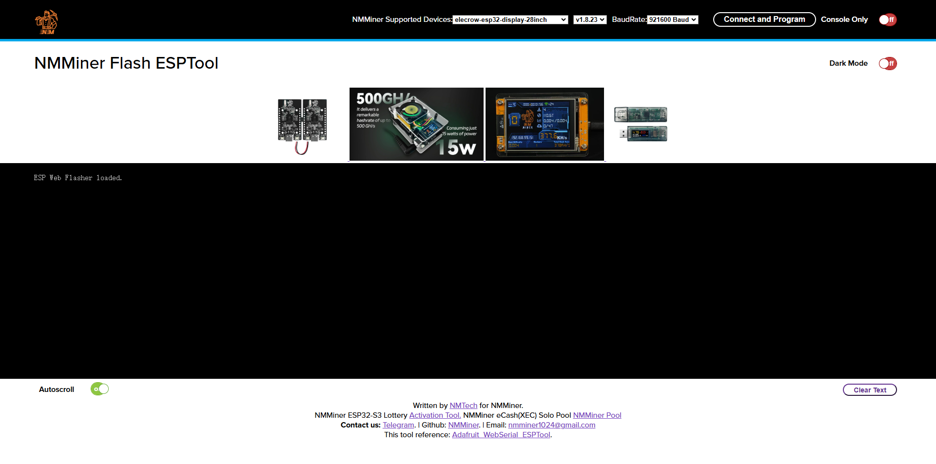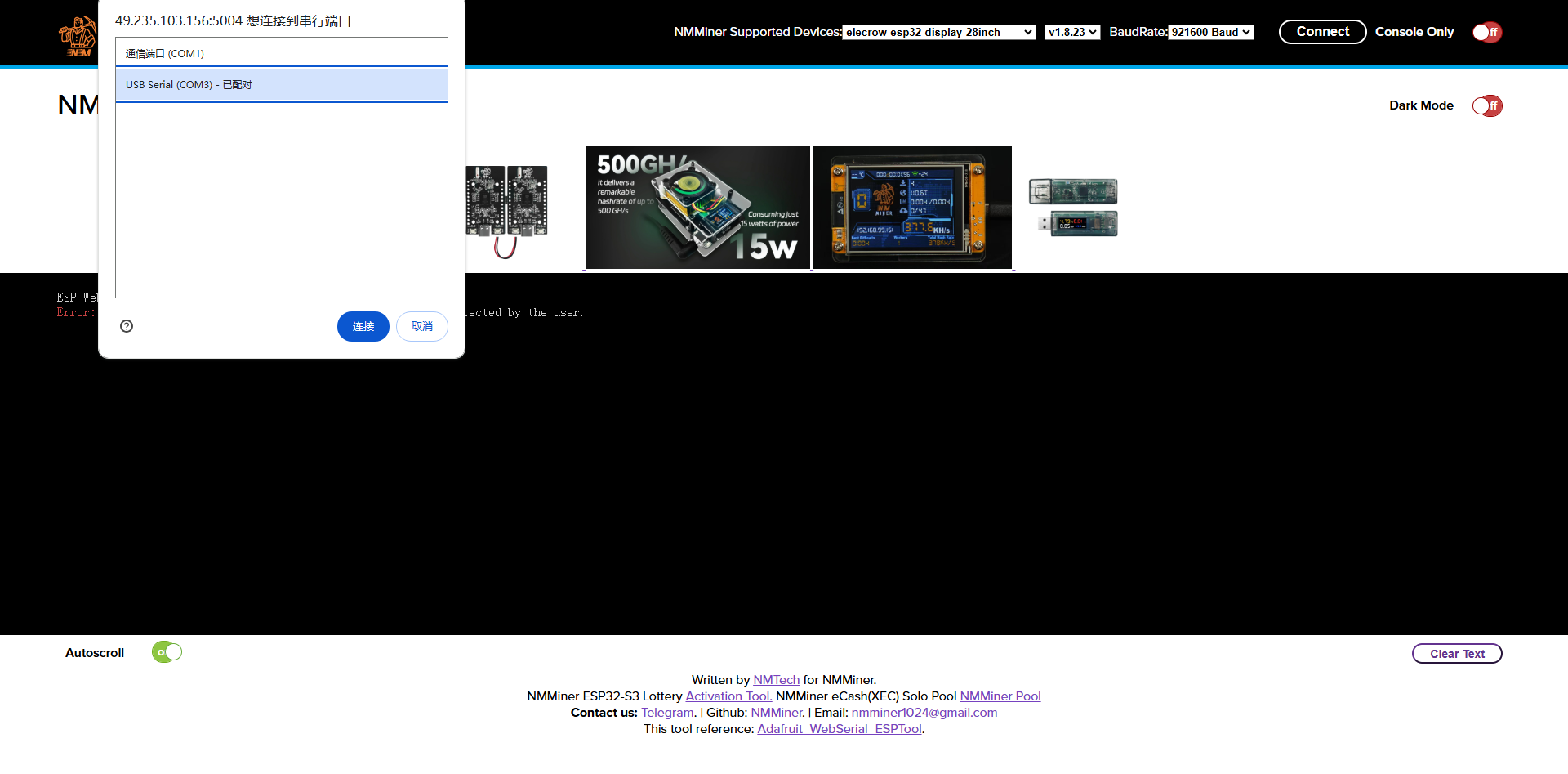- Enter https://flash.nmminer.com/ in your browser, select Firmware and BaudRate.
