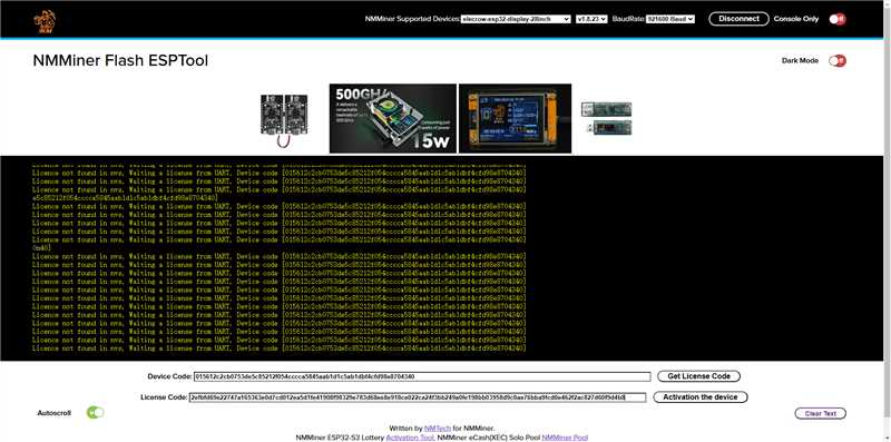 Enter https://flash.nmminer.com/ in your browser, select Firmware and BaudRate.